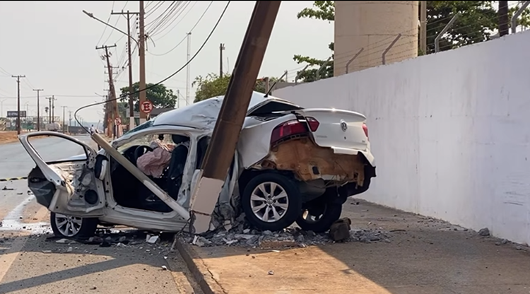 Um acidente de trânsito envolvendo um Volkswagen Voyage resultou em dois feridos graves no domingo (14/9), em Sorriso (398 km de Cuiabá). O veículo colidiu contra um muro e, em seguida, atingiu um poste de energia, ficando bastante danificado.