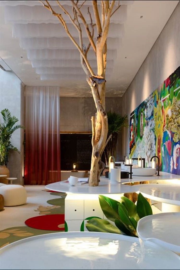 Além de seu profundo significado, o espaço “Águas do Pantanal” destaca a parceria com a Deca. Chuveiros, bacias sanitárias, cubas, torneiras e uma banheira, complementam a proposta com elegância e funcionalidade, reforçando a mensagem de sustentabilidade e design presente no ambiente.