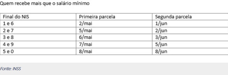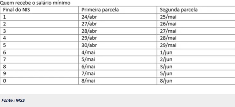 A primeira parcela será paga de 24 de abril a 8 de maio. A segunda parcela vai de 25 de maio a 8 de junho.