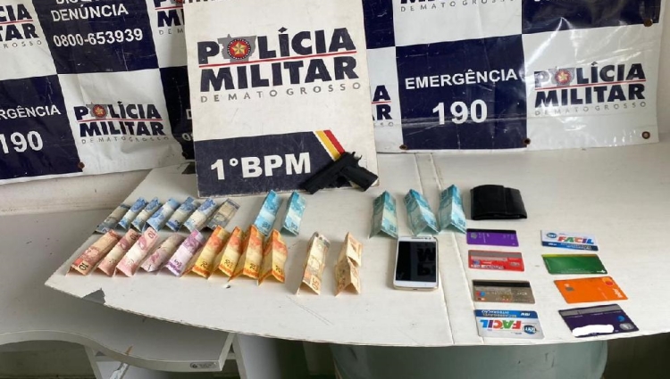 Um homem de 33 anos foi preso em flagrante pela Polícia Militar após um roubo em uma casa lotérica, na manhã desta quinta-feira (13), em Cuiabá. Com o suspeito, a PM apreendeu um simulacro de arma de fogo e a quantia de R$ 730, roubada na ação criminosa.