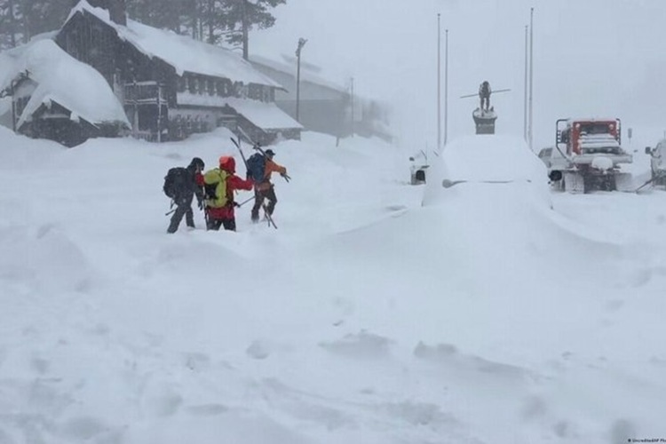 Um grupo de 15 esquiadores foi atingido pela neve. Equipes de resgate conseguiram retirar do local seis deles. Os esforços de resgate continuam com 46 equipes de emergência em esquis e veículos de neve.