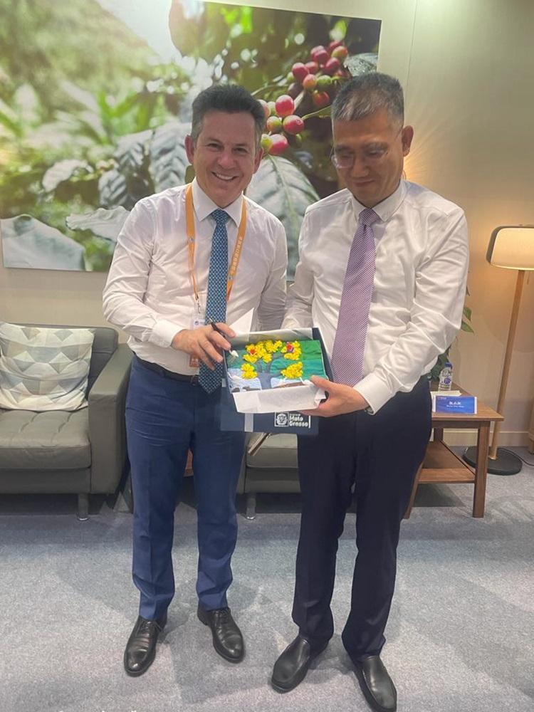 “A China está disposta a fortalecer ainda mais os intercâmbios e a cooperação com o governo e as empresas do Estado de Mato Grosso. Vamos trabalhar para promover a liquidação do comércio bilateral, continuar a apoiar a exportação de produtos agrícolas brasileiros para a China e promover a exportação de fertilizantes, pesticidas, máquinas e equipamentos agrícolas, drones, big data e outros equipamentos modernos de monitoramento de plantio para ajudar no crescimento das safras”, disse Zhang Xinyuan.