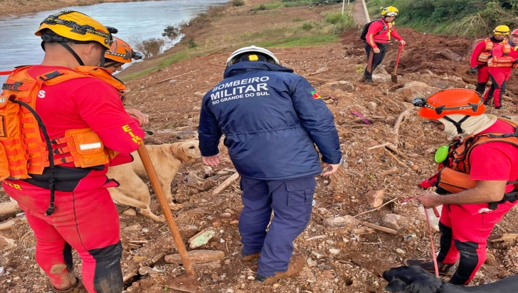 A ação de resgate conta com 11 militares, dois cães de Mato Grosso, oito militares Rio Grande do Sul e um do do Exército Brasileiro. A equipe foi enviada, pelo Governo de Mato Grosso, no dia 4 deste mês, para ajudar a minimizar os estragos relacionados às chuvas.