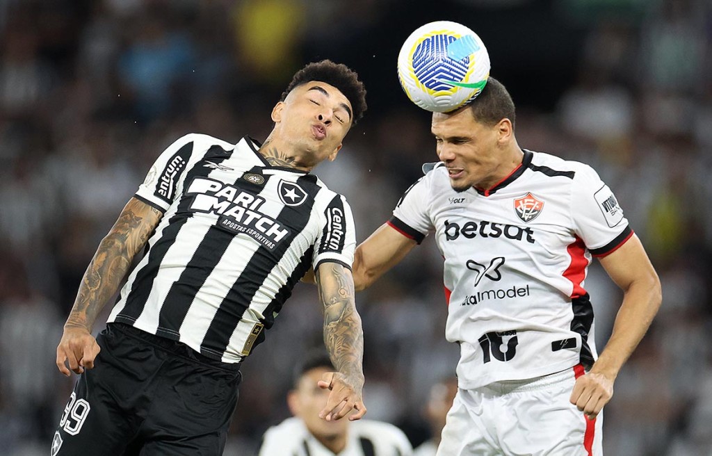 Desfalcado de Alexander Barboza e Luiz Henrique, suspensos, o Botafogo começou a partida pressionado pelo Vitória. Logo aos 44 segundos, Willian Oliveira teve ótima chance para abrir o placar para os visitantes. O Fogão respondeu com Savarino, que levou perigo em duas finalizações. No entanto, foi o Vitória quem inaugurou o marcador aos 19 minutos, com Alerrandro aproveitando cruzamento e desvio da zaga. O Botafogo pressionou em busca do empate ainda no primeiro tempo, mas parou nas defesas de Lucas Arcanjo.
