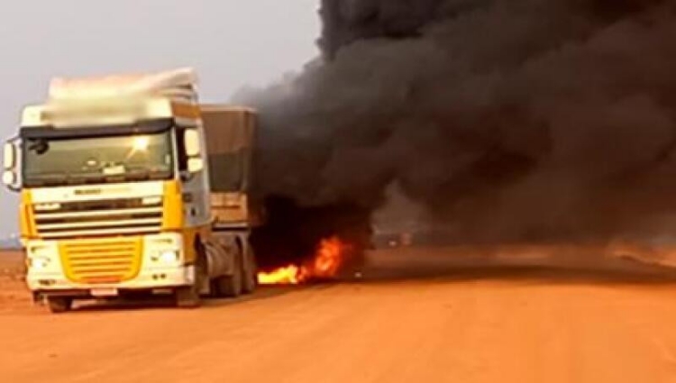Um incêndio destruiu uma carreta bitrem carregada com adubo na tarde de domingo (11), na MT-560, trecho conhecido como Estrada do Pontal Verde, zona rural de Sorriso. Não houve vítimas.