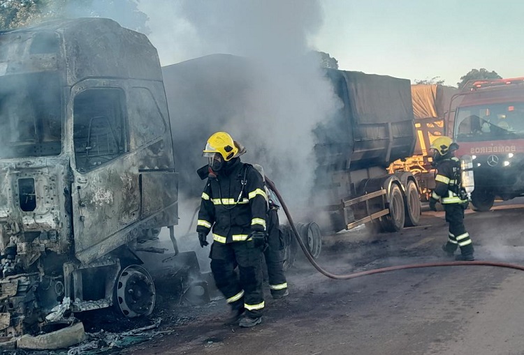 O Corpo de Bombeiros Militar de Mato Grosso (CBMMT) combateu, na manhã deste domingo (20.7), um incêndio em uma carreta na BR-163, no km 890, em Sinop (a 480 km de Cuiabá). Graças à rápida atuação das equipes, ninguém ficou ferido.