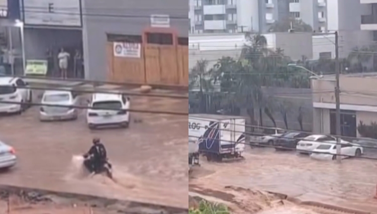 A forte chuva que atingiu Cuiabá no início da tarde desta terça-feira (15) provocou alagamentos e transformou a Avenida do CPA, no Centro da cidade, em um verdadeiro rio de lama. Imagens registradas por moradores mostram o caos: veículos circulando com dificuldade, em meio à enxurrada carregada de terra e entulhos.