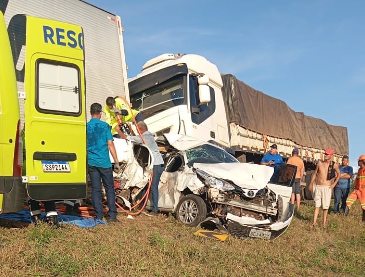 De acordo com informações preliminares, o acidente foi causado por um engavetamento. Entre os veículos envolvidos estão uma carreta Iveco branca, um VW T-Cross cinza, um VW Gol branco, um Toyota Yaris branco, uma carreta Scania 440 branca e outra carreta ainda não identificada.