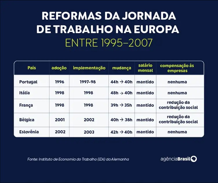 “Entre 1995 e 2007, os países europeus experimentaram um crescimento relativamente forte. A redução do horário de trabalho padrão e o aumento do custo da mão de obra por hora trabalhada foram rapidamente absorvidos, sem efeitos consideráveis sobre o emprego”, diz a publicação de setembro de 2022.