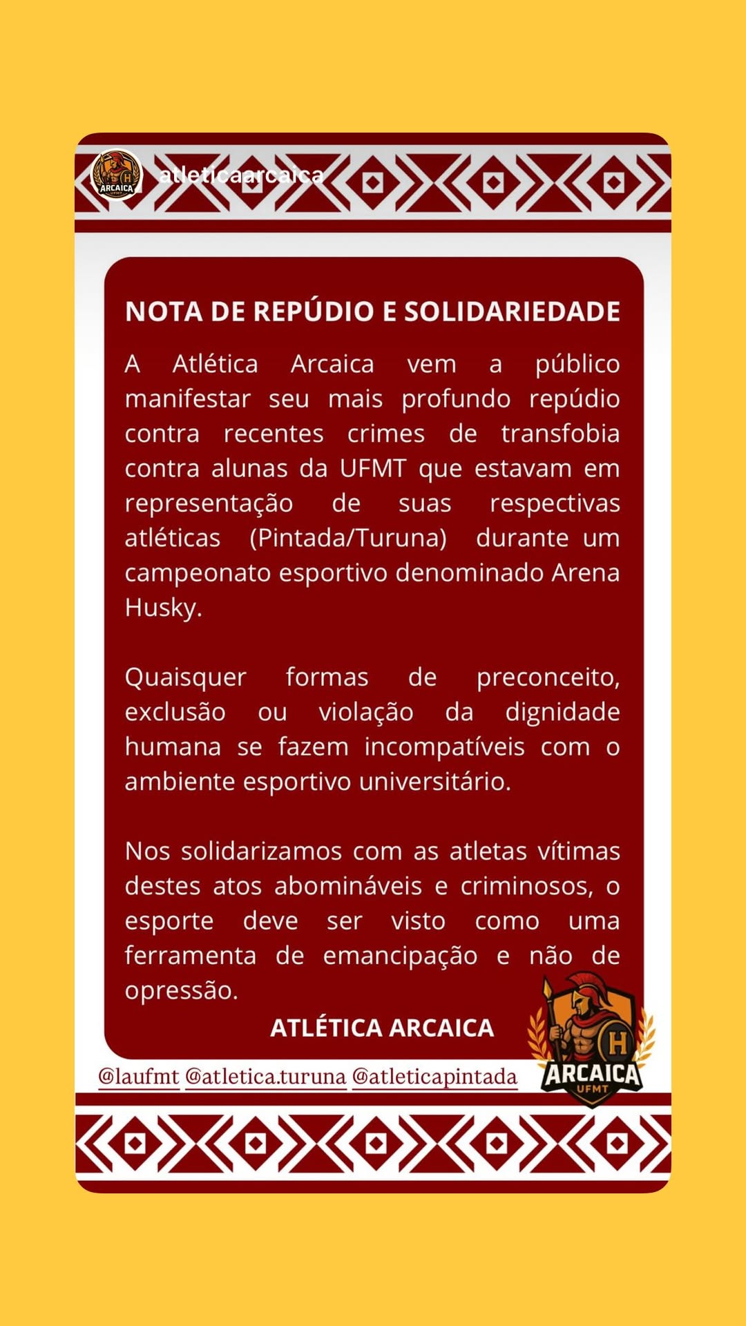 Um episódio de transfobia registrado durante um torneio universitário provocou reação de diversas equipes e entidades esportivas. O caso ocorreu no último sábado (25), no Ginásio Poliesportivo da Universidade Federal de Mato Grosso, durante a competição Arena Husky.