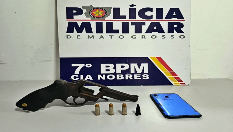 Um adolescente, de 17 anos, foi apreendido e um homem, de 25 anos, foi preso suspeitos por formação de quadrilha e porte ilegal de arma de fogo nas proximidades de bar na Avenida Marechal Rondon, região central do município de Nobres (122 km de Cuiabá). Com a dupla, policiais militares do 7º Batalhão recolheram um revólver calibre 38, três munições e um aparelho celular.