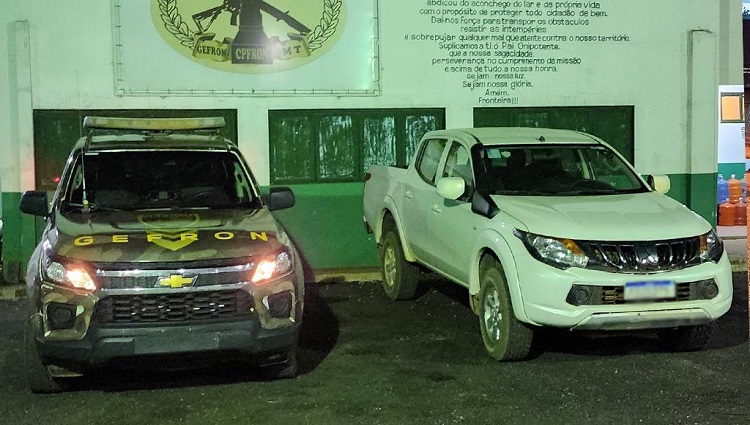 Ainda em Porto Esperidião, nessa terça-feira (03.10), os policiais abordaram o condutor de uma Mitsubishi/L200 Triton de cor branca, trafegando pela MT-265, sentido Bolívia. Durante vistoria no veículo, os policiais constataram sinais identificadores do veículo adulterados, indicando a possibilidade de ser produto de roubo/furto. O motorista foi preso e encaminhado para Delegacia de Fronteira, em Cáceres. A caminhonete, avaliada em R$ 180 mil, deve passar por perícia para confirmar a procedência.