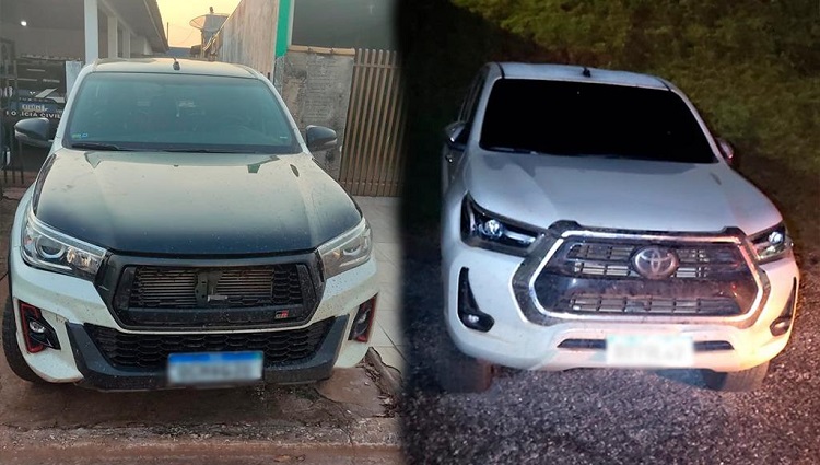 No mesmo dia, nas cidades de Itaubá e Sorriso, foram recuperadas duas caminhonetes da marca Toyota Hilux, ambas furtadas em Cuiabá. Dois homens foram encaminhados para a delegacia. Juntas, as caminhonetes estão avaliadas em R$ 440 mil.