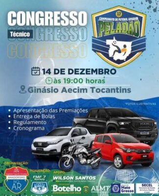 Está chegando a hora! Nesta quinta-feira (14), às 19h, no Ginásio Aecim Tocantins, em Cuiabá, acontece o Congresso Técnico do Peladão Luck Bet 2023/24: o maior campeonato de futebol amador do Brasil. Este ano, a competição vai reunir mais de 700 equipes de aproximadamente 60 municípios de Mato Grosso, “times formados por atletas das periferias que amam o esporte e que durante 6 meses dão o sangue pelo futebol amador”.