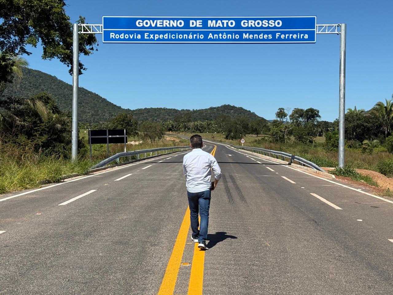 O trecho da MT-361 até a Serra de São Vicente recebeu o nome de Expedicionário Antônio Mendes Ferreira, pai do governador.