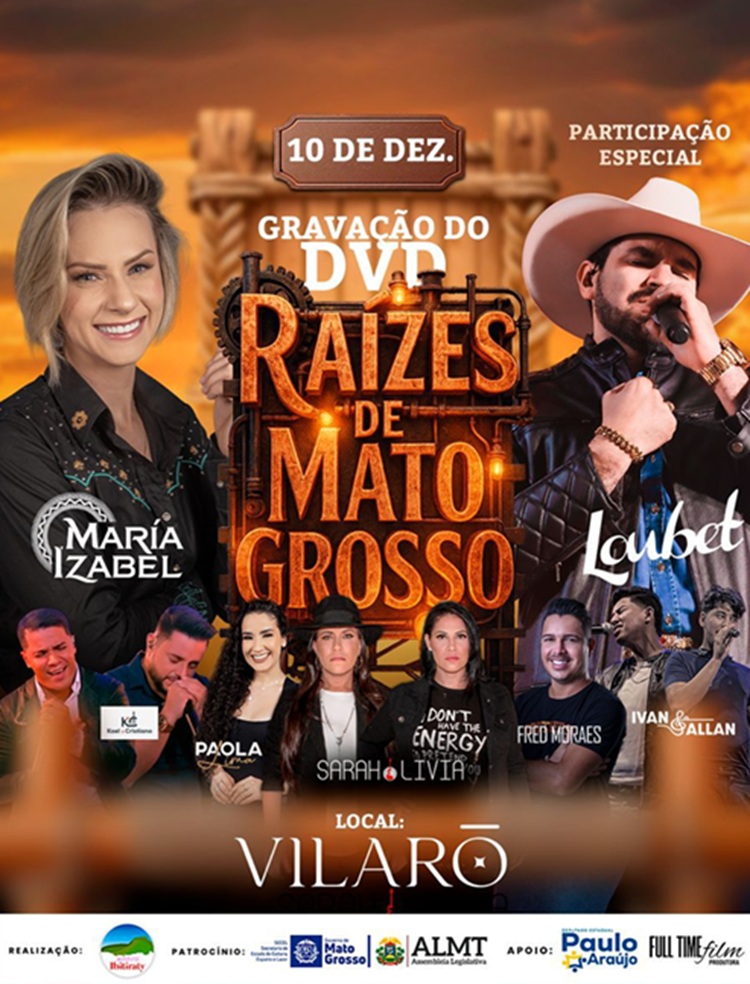 A capital mato-grossense será palco de um dos eventos mais esperados do ano para os amantes da música sertaneja e regional. Nesta quarta-feira (10/12), o espaço Vilaró recebe a gravação oficial do DVD “Raízes de Mato Grosso”, projeto que reúne artistas consagrados e talentos em ascensão que representam a sonoridade e a cultura do estado.