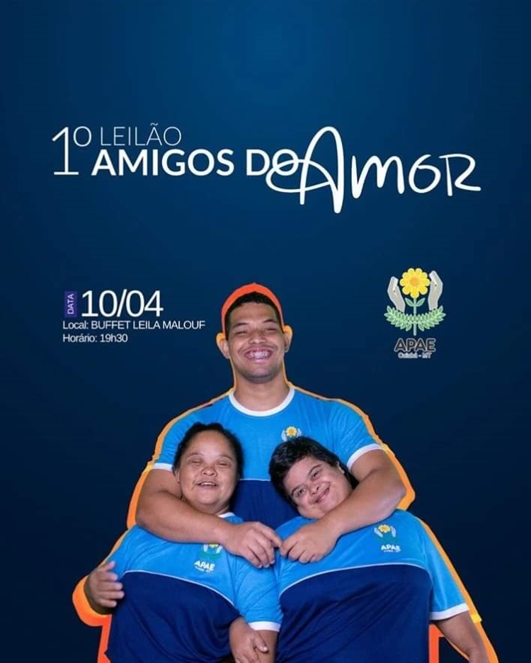 O 1º Leilão Amigos do Amor pretende reunir a sociedade cuiabana na próxima quarta-feira (10.04), por uma grande causa: arrecadar recursos e apoiar o trabalho da Associação de Pais e Amigos dos Excepcionais da Capital (Apae – Cuiabá). O evento será realizado às 19h no Buffet Leila Malouf, e para além do apoio financeiro à entidade, o objetivo dos realizadores é ampliar o conhecimento sobre o atendimento às pessoas com síndrome de down e outras deficiências, assistidos de forma gratuita na unidade.