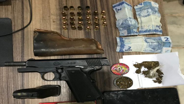 Um homem foi preso por porte ilegal de arma de fogo, uso ilícito de drogas e corrupção de menor, na região central do município de Vila Bela de Santíssima Trindade (522 km de Cuiabá).