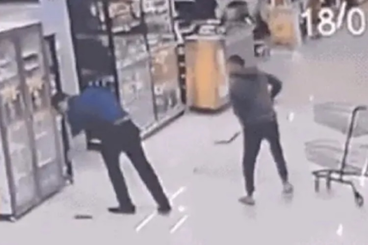 Câmeras de segurança filmaram o momento em que agressor entrou no estabelecimento, caminhou até uma prateleira com pás, foi até o local onde o gerente estava e o atacou na cabeça por trás. A vítima caiu inconsciente.