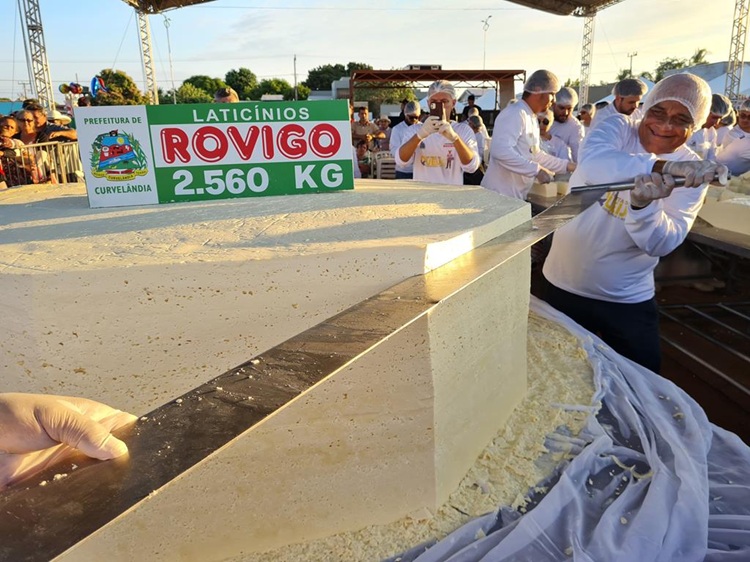 Em 2024, o queijo gigante produzido durante o evento atingiu 2.560 quilos. A meta agora é ultrapassar esse peso, mobilizando dezenas de trabalhadores, produtores e voluntários de várias regiões do estado.