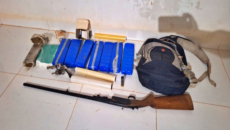 Os policiais localizaram uma mochila contendo drogas e duas armas de fogo, que estavam em cima do painel da sala e do guarda-roupa. O homem confessou que recebia um pagamento mensal da facção criminosa para que guardasse os produtos ilícitos.