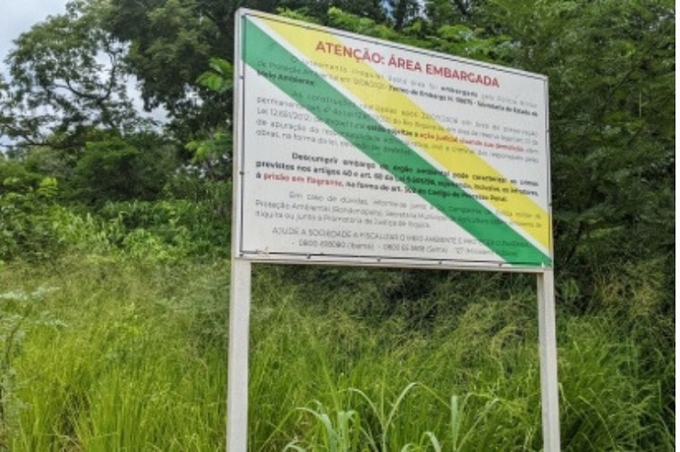Consta na ação proposta pelo Ministério Público, que em 2020 a Fazenda Bica D´Água foi alvo de termo de embargo após constatação da supressão de parte da vegetação para abertura de estradas e demarcação de loteamento. Na ocasião, foi verificada a existência de uma construção na área de reserva legal da propriedade, que estava sendo loteada. Havia, ainda, novas construções em andamento.