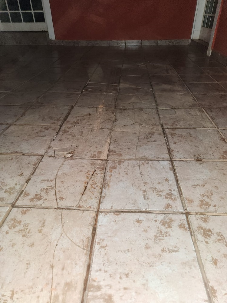 Piso rachado na área interna devido a ação das máquinas