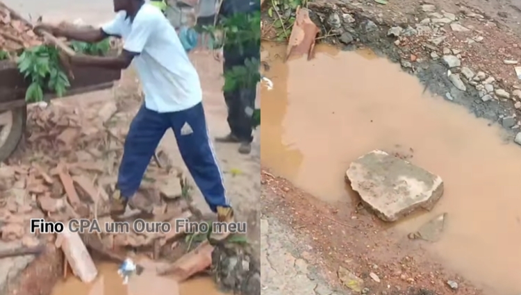 Cansados de esperar por providências do poder público, moradores dos bairros Ouro Fino e CPA 1, em Cuiabá, decidiram agir por conta própria. Nesta segunda-feira (05), grupos de vizinhos jogaram entulho sobre os buracos que tomaram conta da via e impedem a passagem de carros e motos, especialmente em dias de chuva.