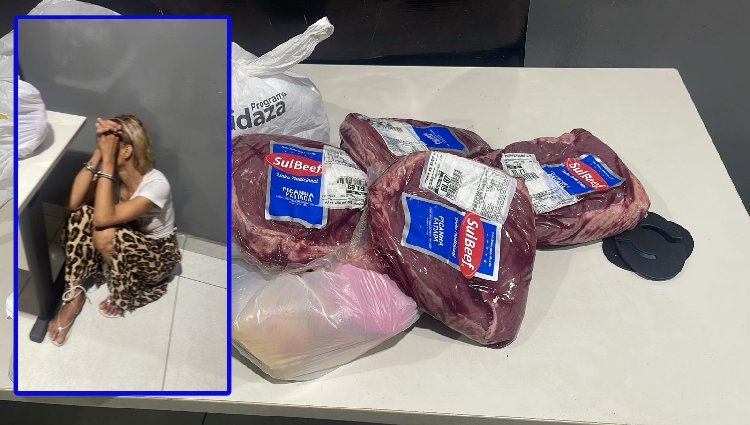 Uma mulher de 32 anos foi presa na tarde desta segunda-feira (5), após furtar quatro peças de picanha e outros produtos do supermercado Fort Atacadista, localizado na Avenida da FEB, em Várzea Grande.