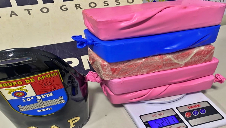 O Grupo de Apoio (GAP) do 10º BPM iniciou diligências e abordou o ônibus com as suspeitas, transitando pelo bairro Paiaguás. Em contato com os passageiros, foram localizadas as duas suspeitas, sendo que com a adolescente foram encontrados cinco tabletes de pasta base de cocaína amarrados em seu corpo.