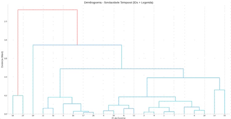 As linhas numeradas no dendrograma correspondem às seguintes modalidades de crédito rural: (1) Custeio (MCR 10-4), (2) Mais Alimentos (MCR 10-5), (3) Financiamento – Custeio e Comercialização (MCR 9-2 e 9-3), (4) Crédito Sustentável, (5) Microcrédito Produtivo Rural – Grupo B, (6) Construção de Armazéns Novos, (7) Aquisição de Café, (8) Ampliação e Modernização de Armazéns Existentes, (9) Agropecuária Irrigada Sustentável, (10) PRONAMP, (11) Crédito de Investimento – PRONAF Bioeconomia, (12) Fomento à Produção Indígena, (13) Programa de Inovação Agropecuária, (14) Reforma Agrária – Beneficiários PNRA, (15) Agroindústria Investimento, (16) Agricultura Familiar, (17) PRONAF Mulher, (18) FINISA Mais, (19) Recuperação de Solos, (20) PRONAF Semiárido, (21) PRONAF Floresta e (22) FTRA Social.