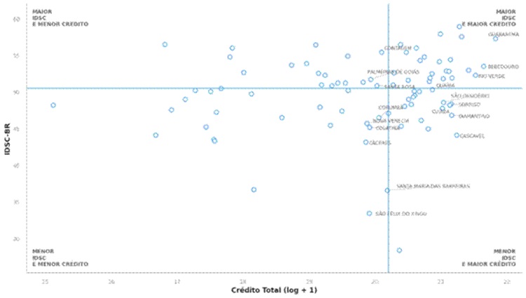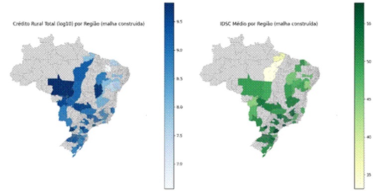 Distribuição municipal do crédito rural e do índice de desenvolvimento das cidades (IDSC-BR)