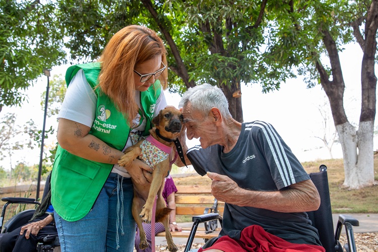 A Prefeitura de Cuiabá, por meio da Diretoria de Bem-Estar Animal, proporcionou na manhã deste sábado (13) um momento especial aos moradores do Abrigo de Idosos Bom Jesus com uma atividade de integração com cães acolhidos pela diretoria. A ação marcou o início de um projeto piloto, pensado para trazer bem-estar e fortalecer os laços afetivos entre humanos e animais.