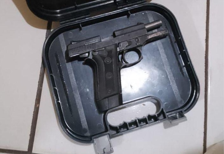 Foi realizado contato com a dona da residência, que informou que estava alugando o local para duas pessoas. A PM entrou no imóvel e localizou uma maleta, contendo uma pistola de calibre .40 de numeração raspada com uma munição.
