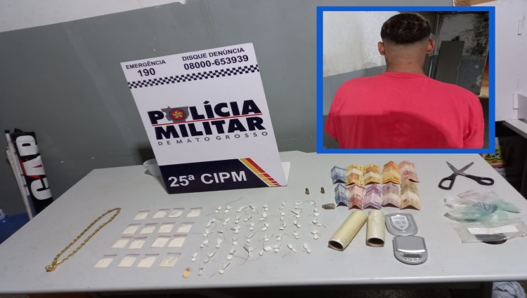 Um homem foi preso em flagrante pela Polícia Militar na noite de sábado (18), com porções de drogas embaladas para comércio, em uma festa no Bar Paraíso, no bairro São Mateus, em Várzea Grande (região metropolitana de Cuiabá).