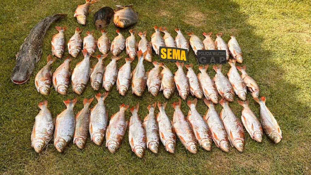 A equipe da Coordenadoria de Fiscalização de Fauna, da Secretaria de Estado de Meio Ambiente (Sema), apreendeu 25 quilos de peixes em operação contra pesca ilegal no município de Rosário Oeste, neste fim de semana. A ação foi realizada junto com policiais do 10º Batalhão de Polícia Militar.