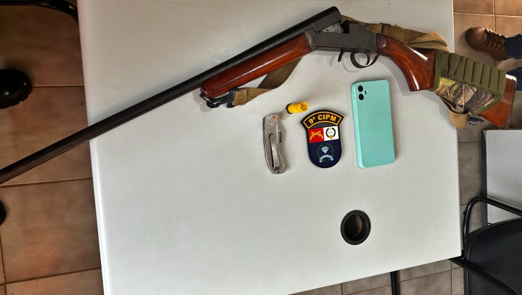 Os policiais militares se deslocaram até o imóvel, identificaram o suspeito e o abordaram. No local, as equipes ainda apreenderam a arma de fogo. O homem foi encaminhado à delegacia para registro do boletim de ocorrência.