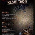 No local da ocorrência, os militares apreenderam um revólver calibre .38 e meio tablete de pasta base de cocaína. Foi constatado que o jovem utilizava tornozeleira eletrônica no momento do confronto e possuía uma extensa ficha criminal, acumulando registros desde 2018 por crimes graves como tortura, sequestro, organização criminosa, homicídio doloso e tráfico de drogas em diversas cidades de Mato Grosso, incluindo Cuiabá e Rondonópolis.