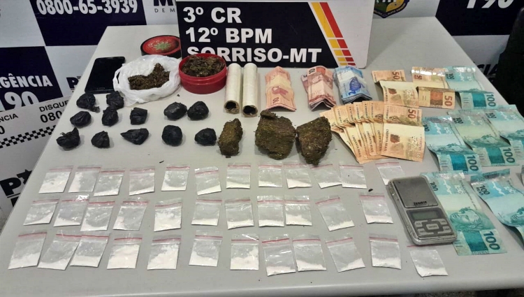 Um integrante de organização criminosa, foi preso na noite desta terça-feira (03), com 50 porções de maconha e cocaína, mais de R$ 1.4 mil em espécie, no Bairro Jardim Bela Vista, no município de Sorriso (397 km de Cuiabá).