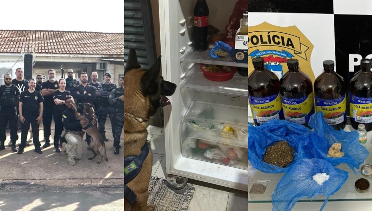 As equipes policiais apreenderam diversas porções de entorpecentes (maconha, pasta base de cocaína e cocaína), além de cadernos, envelopes, balança e demais itens que comprovam a prática do tráfico de entorpecentes na região.